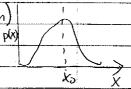 To characterize the posterior \(p(x)\), we look nearby. We want to know how sharp this maximum is: is \(p(x)\) sharply peaked around \(x=x_0\) or is the maximum kind-of shallow? To work this out we’ll do a Taylor expansion around \(x=x_0\). \(p(x)\) itself varies too fast, but since \(p(x)\) is positive definite we can Taylor expand \(\log p\) instead. (See the box below for a strict mathematical reason why it’s a bad idea to directly Taylor expand \(p(x)\) around its maximum.)